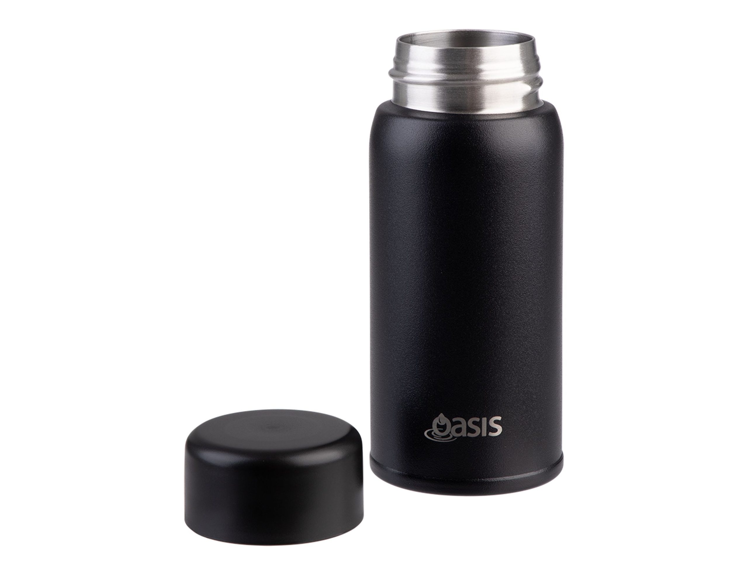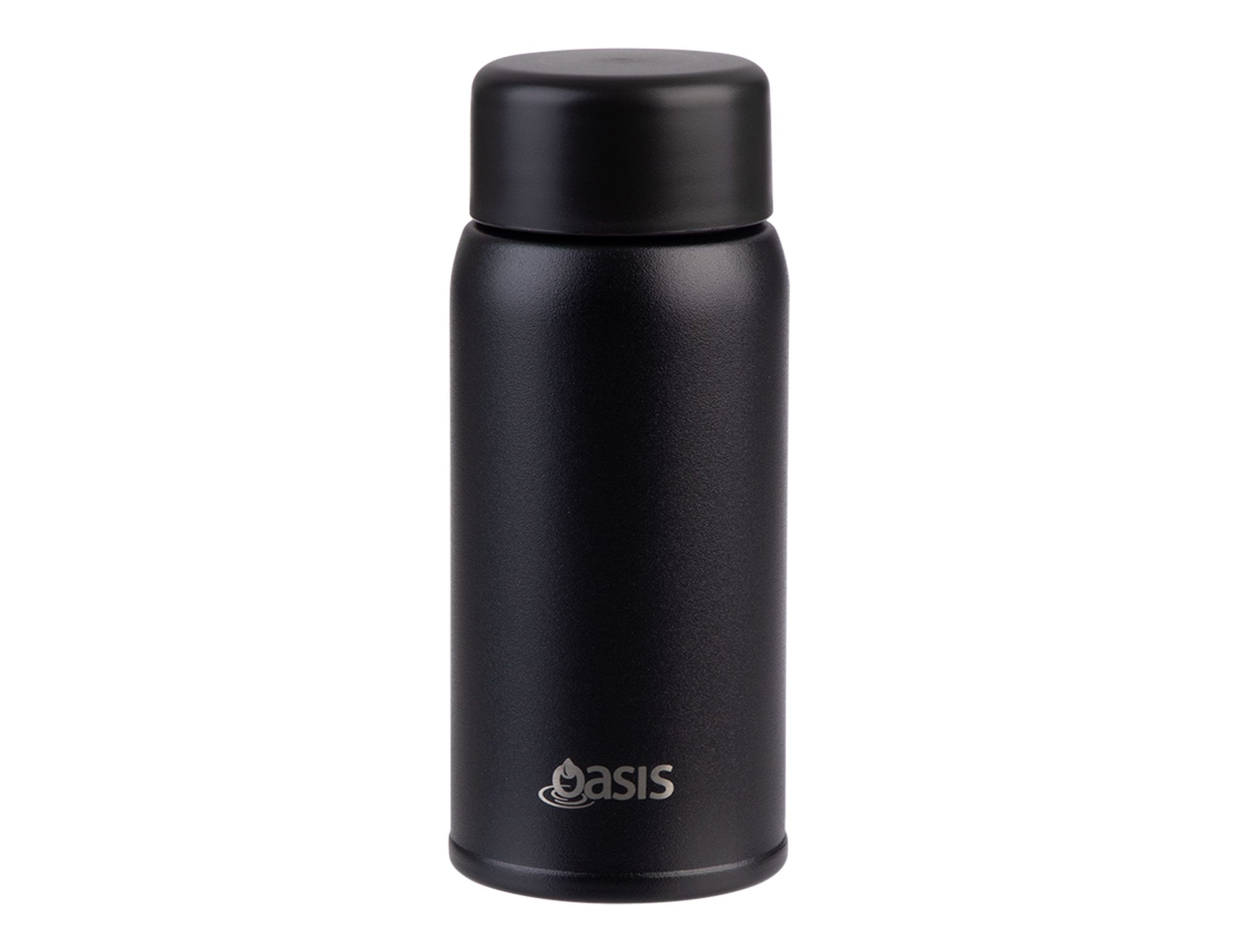 Small in size, big on performance. The Oasis Mini-Mini drink bottle is designed for convenience on the go, keeping your drinks at the perfect temperature in a sleek, compact form. Crafted from premium 18/8 stainless steel inside and out, it features double wall vacuum insulation to keep beverages cold for up to 12 hours or hot for up to 4. A durable powdercoat finish resists everyday wear, while the leakproof screw-top lid ensures worry-free hydration wherever you take it. With its minimalist design and eco-friendly construction, this bottle is the perfect pocket-sized companion for daily life. Product Size: 5 x 5 x 12cm Capacity: 150ml Type: Double Wall Vacuum Insulated Material: 18/8 S/S Outer & inner Colour Range: Black, Linen, Pink Lemonade
