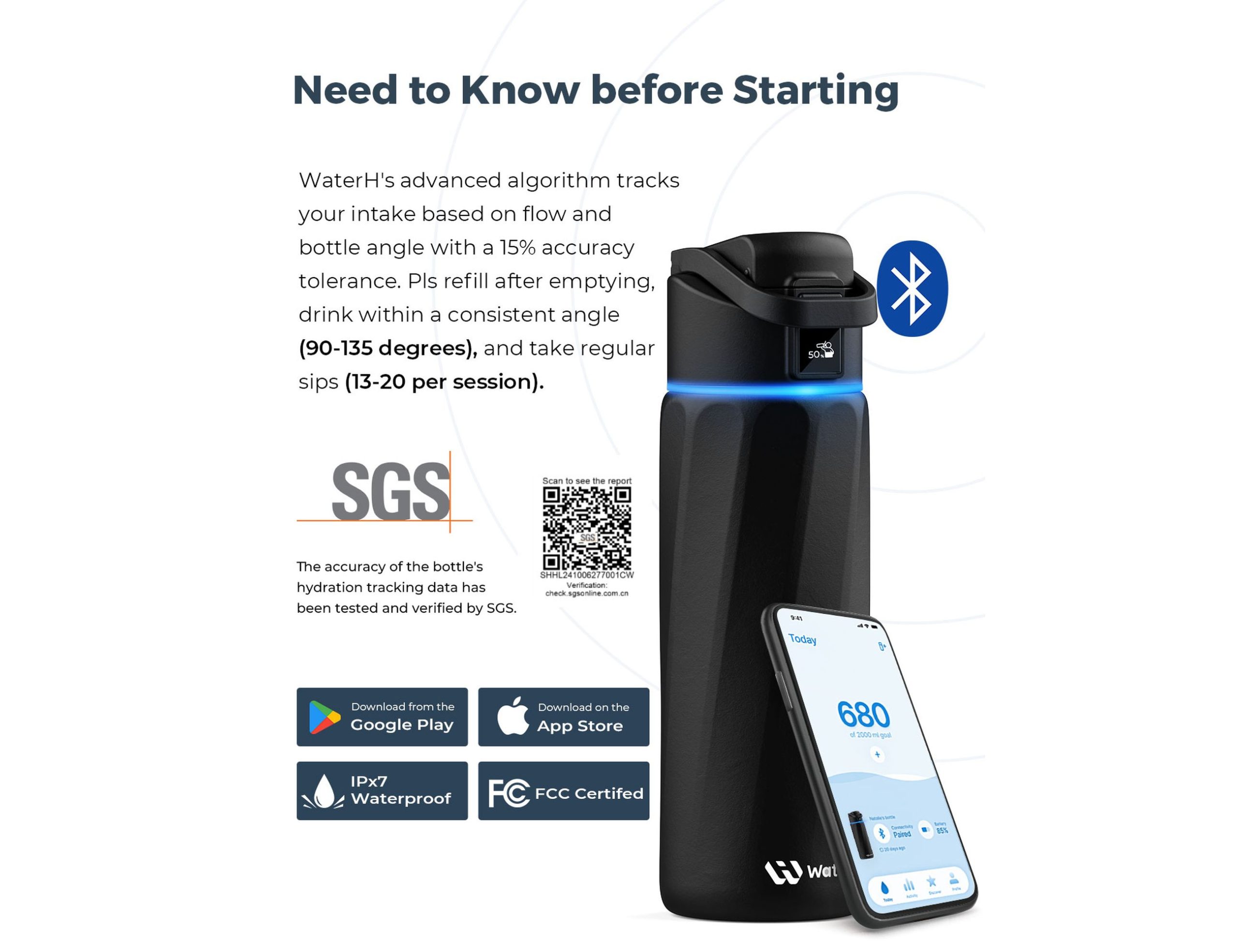 Stay consistently hydrated and crush your wellness goals with the WATERH Boost Smart Water Bottle 24oz (710ml) — the intelligent hydration companion that makes drinking water effortless and rewarding. Designed for everyday life, this sleek, tech-enabled bottle blends modern convenience with health-focused functionality.