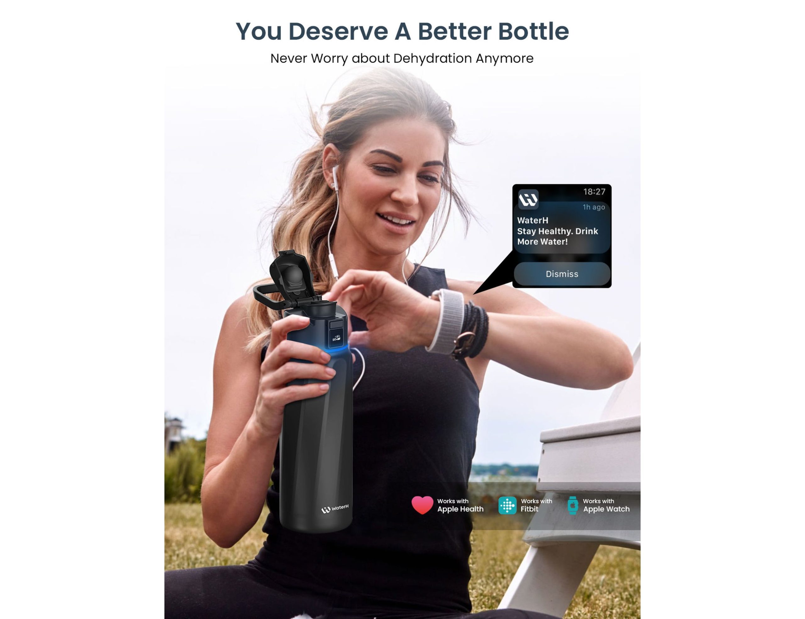 Pair with iOS or Android devices to view real-time data, review historical hydration insights, and sync with health platforms like Apple Health or Fitbit for holistic wellness tracking.