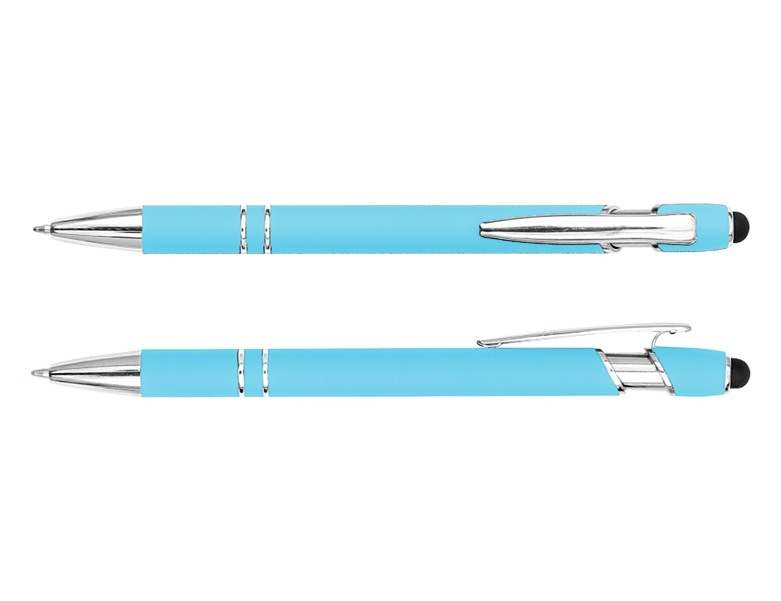 The Colombo Stylus Pen combines modern design with everyday functionality, now available with an expanded indent colour range of over 20 options to perfectly match your brand. Crafted from lightweight aluminium and finished with a premium rubber-feel barrel, it delivers a comfortable grip and smooth writing experience with black ink, plus the added convenience of a touchscreen stylus. Ideal for the office, events, or on the move, it’s a versatile promotional favourite designed to make your branding stand out. Product Size: 14.5cm long Ink Type: Black Ballpoint Colour Range: Yellow, Light Green, Powder Blue, Stone, Tangerine, Irish Green, Sky Blue, Slate, Orange, Forest Green, Royal Blue, Grey, Red, Baby Pink, Navy, Ash, Burgundy, Rose, Grape, Black, Peach, Pink, Purple