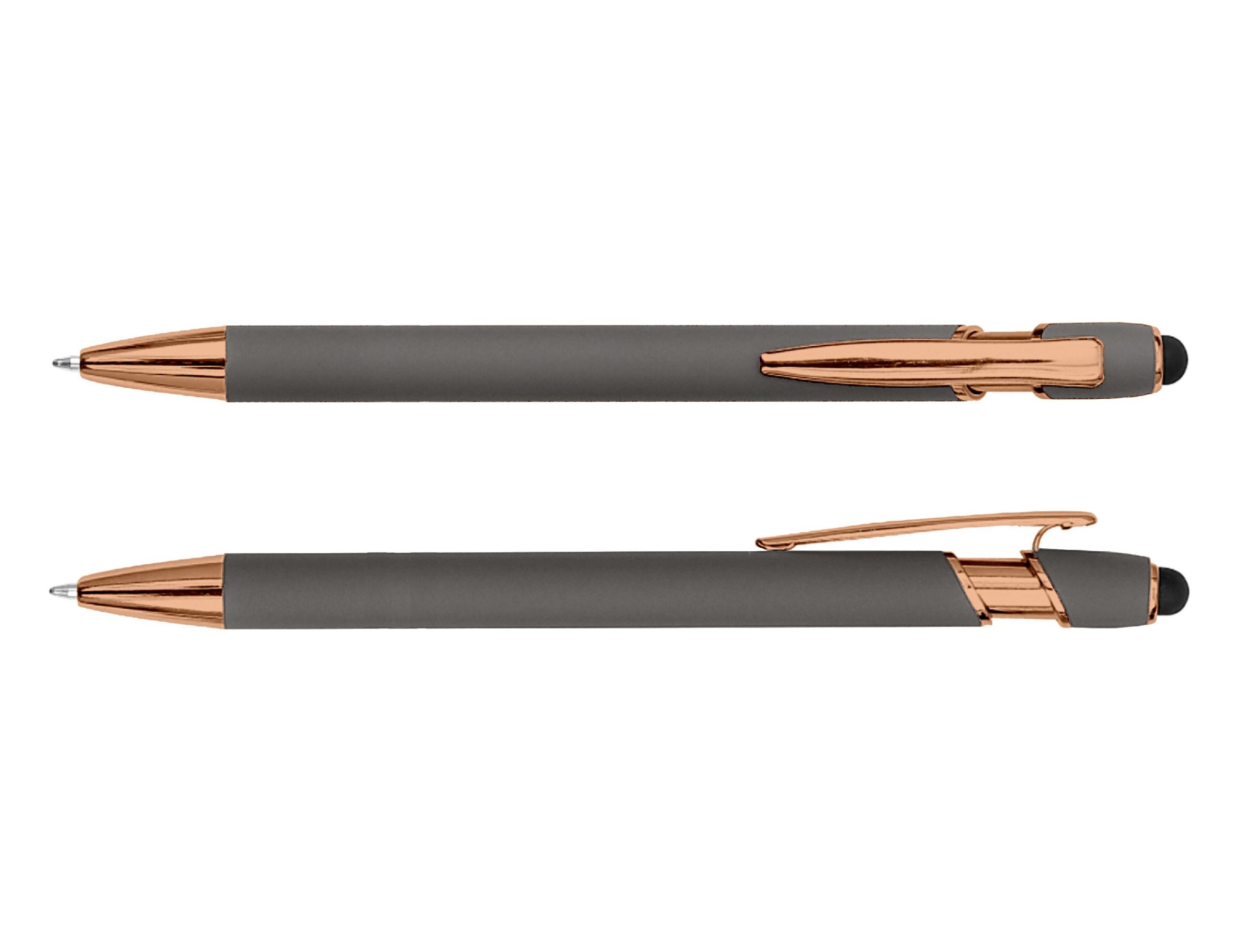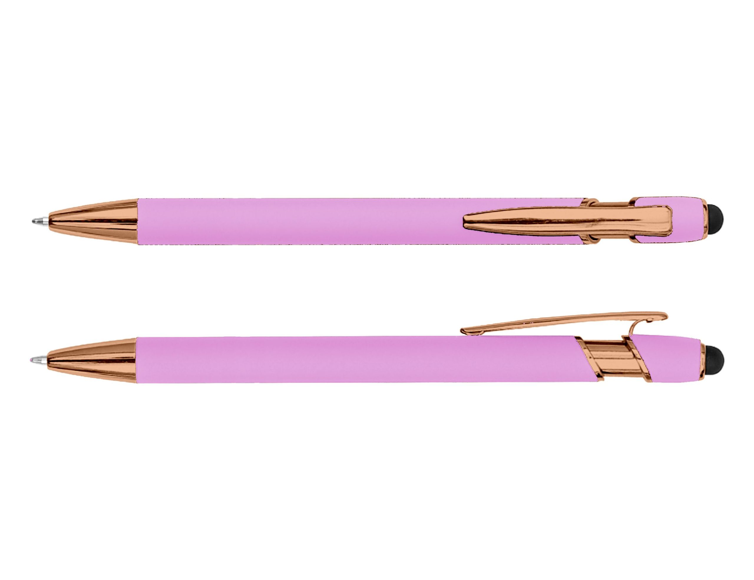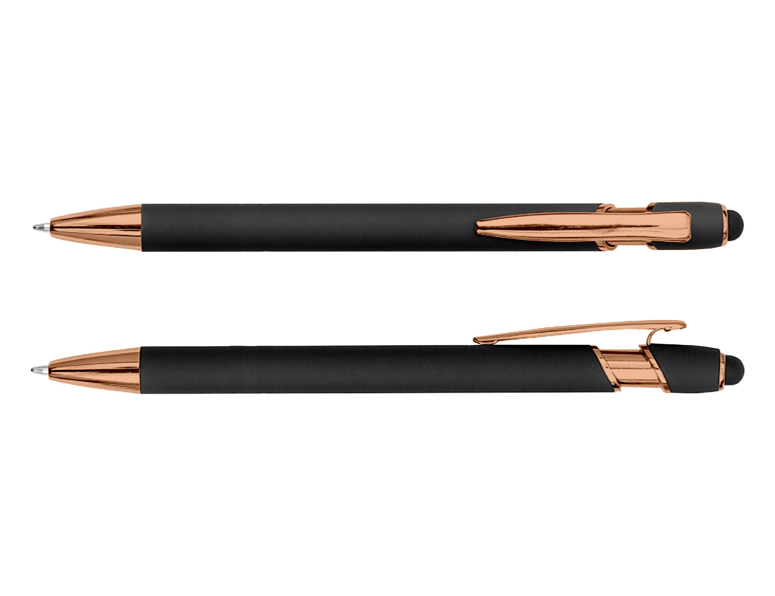 The Colombo Stylus Pen with Rose Gold Trim pairs contemporary style with a touch of luxury. Featuring a soft rubber-feel aluminium barrel accented by elegant rose gold detailing, it offers a refined, premium look that elevates any brand presentation. Complete with smooth black ink and an integrated touchscreen stylus, it’s both practical and sophisticated – perfect for corporate gifts, events, or everyday use. Product Size: 14.5cm long Ink Type: Black Ballpoint Colour Range: Baby Pink, Light Green, Slate, Stone, Rose, Irish Green, Powder Blue, Grey, Pink, Forest Green, Sky Blue, Ash, Red, Grape, Royal Blue, Black, Burgundy, Purple, Navy