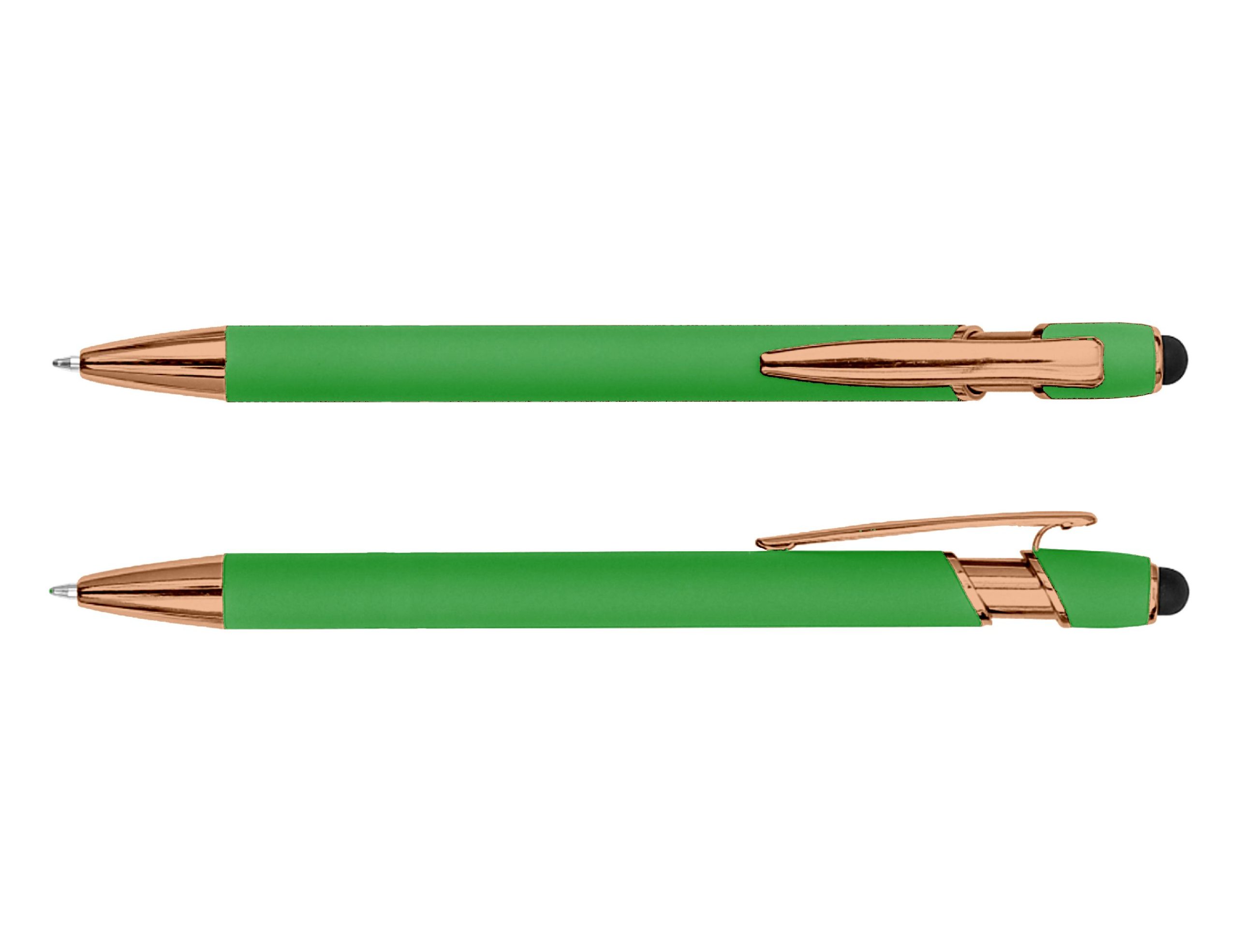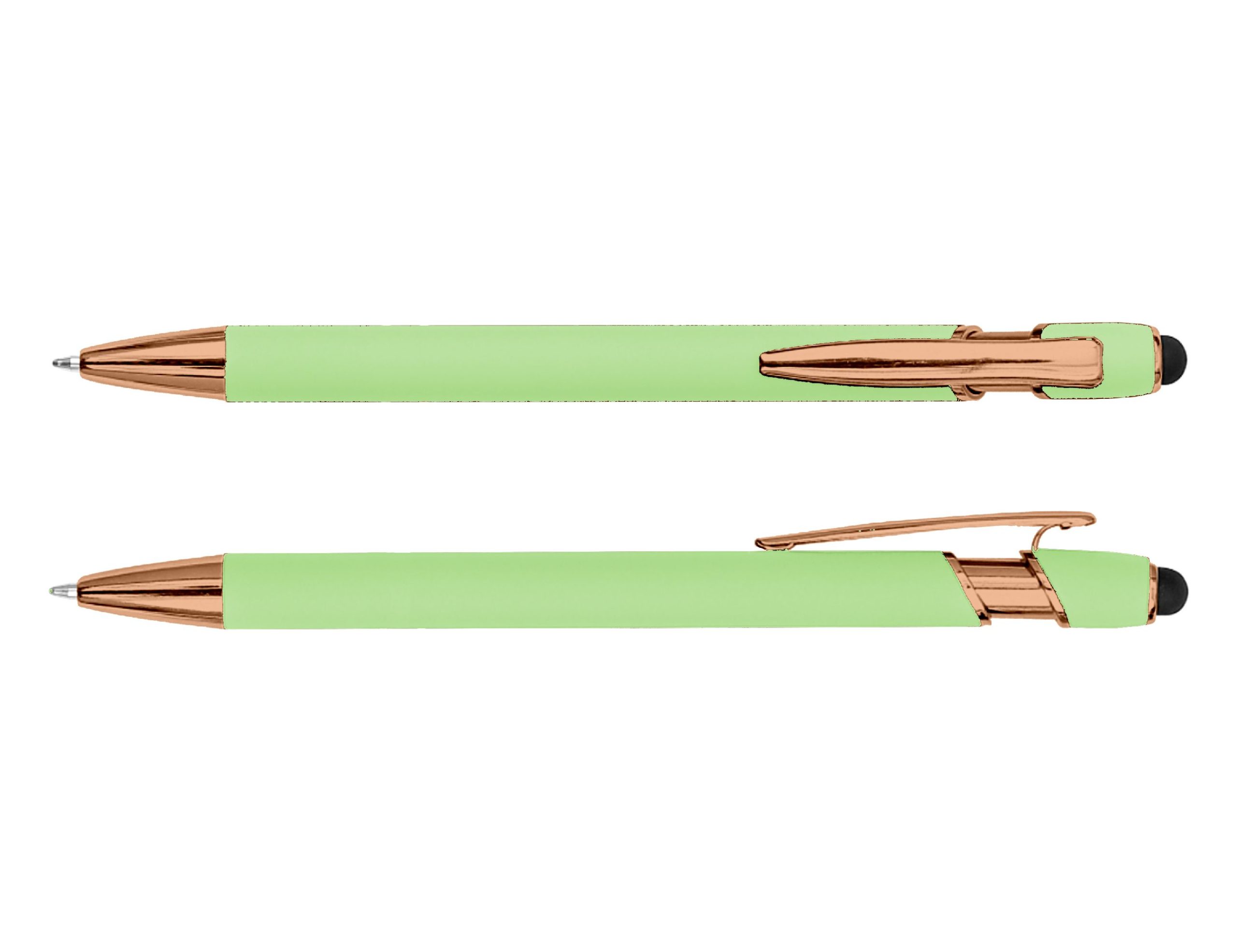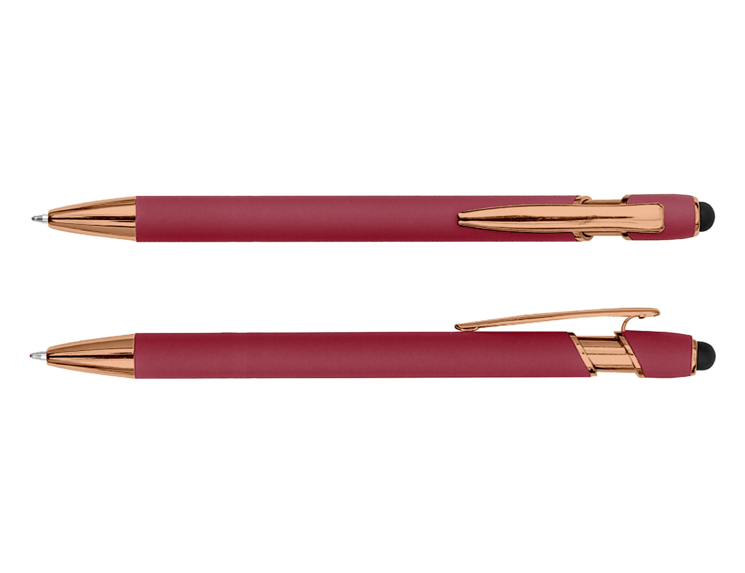 The Colombo Stylus Pen with Rose Gold Trim pairs contemporary style with a touch of luxury. Featuring a soft rubber-feel aluminium barrel accented by elegant rose gold detailing, it offers a refined, premium look that elevates any brand presentation. Complete with smooth black ink and an integrated touchscreen stylus, it’s both practical and sophisticated – perfect for corporate gifts, events, or everyday use. Product Size: 14.5cm long Ink Type: Black Ballpoint Colour Range: Baby Pink, Light Green, Slate, Stone, Rose, Irish Green, Powder Blue, Grey, Pink, Forest Green, Sky Blue, Ash, Red, Grape, Royal Blue, Black, Burgundy, Purple, Navy